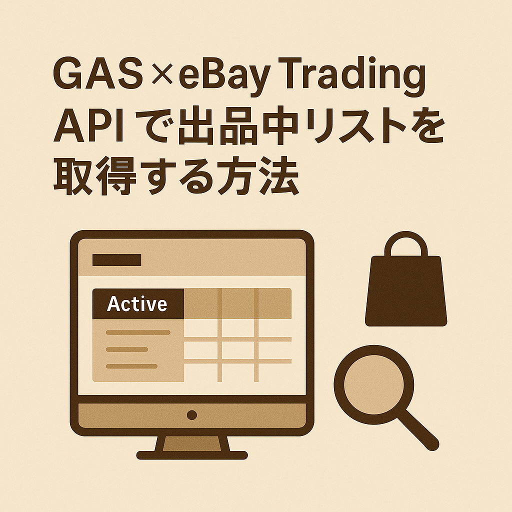 GetMyeBaySelling は、eBay の出品状況(Active / Sold / Unsold)を取得できる Trading API です。この記事では Active(現在出品中) の一覧を取得し、Google Apps Script(GAS)を使ってスプレッドシートへ自動出力する方法を紹介します。